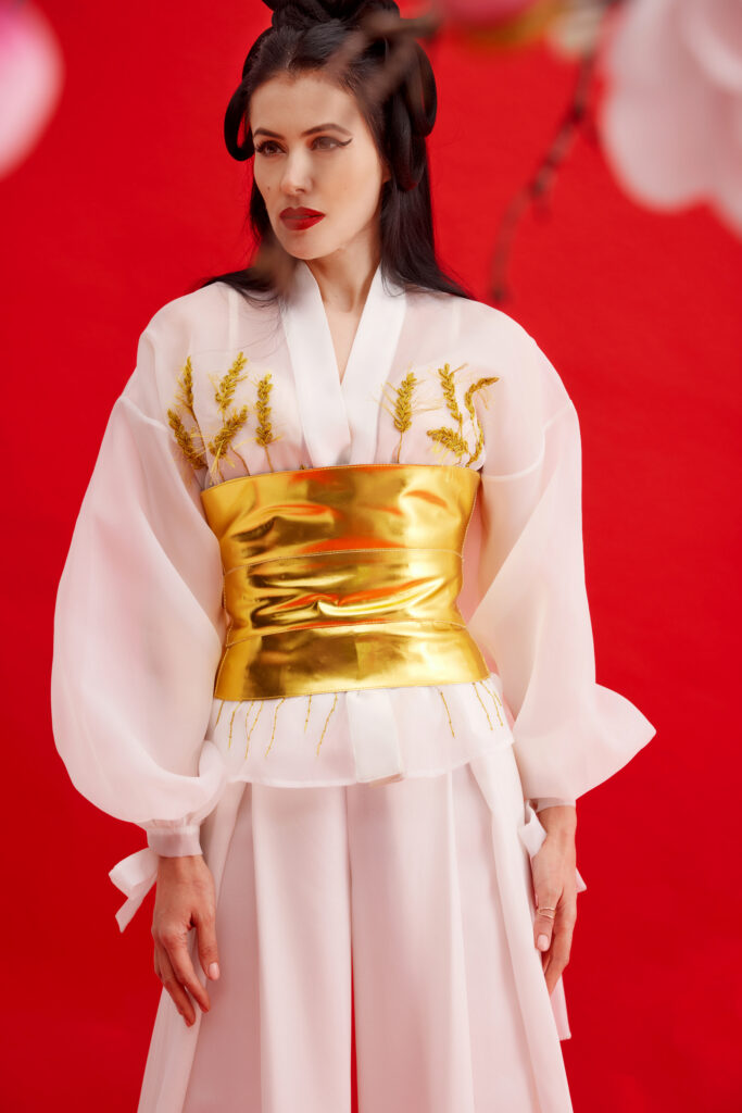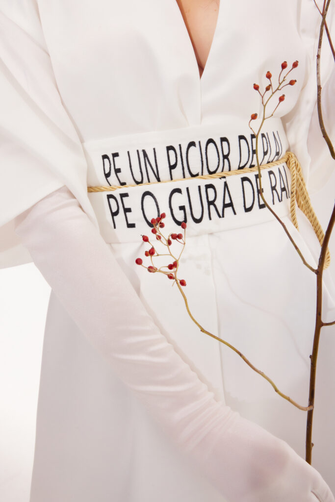 — Do sempre la priorità alla mia cultura. Avere l’opportunità, finalmente, di creare, dopo vent’anni fuori dal Paese, il desiderio per le tradizioni moldave, ad esempio «Hora Moldovenească», «Mărțișorul». Simbolismo — «Spicul» con i campi e il nostro ricco suolo, che rappresenta il nostro pane quotidiano e la pace, dalla nostra ricca letteratura popolare. I racconti «Făt Frumos e Ileana Cosânzeana», «Capra cu trei iezi», «Punguța cu doi bani», la ballata «Miorița», il poema «Oaspeții praverii», di V. Alexandri, la leggenda della Cittadella di Soroca, che rappresenta le collinette , che ha segnato la nostra infanzia, mi ha fatto guardare al nostro Paese e alla nostra Nazione con uno sguardo molto più profondo. È questo desiderio che trabocca il mio cuore e ogni poro della mia pelle si è trasformato in una priorità, una necessità e un’urgenza di far conoscere questa cultura in abiti carichi di significati e storie.